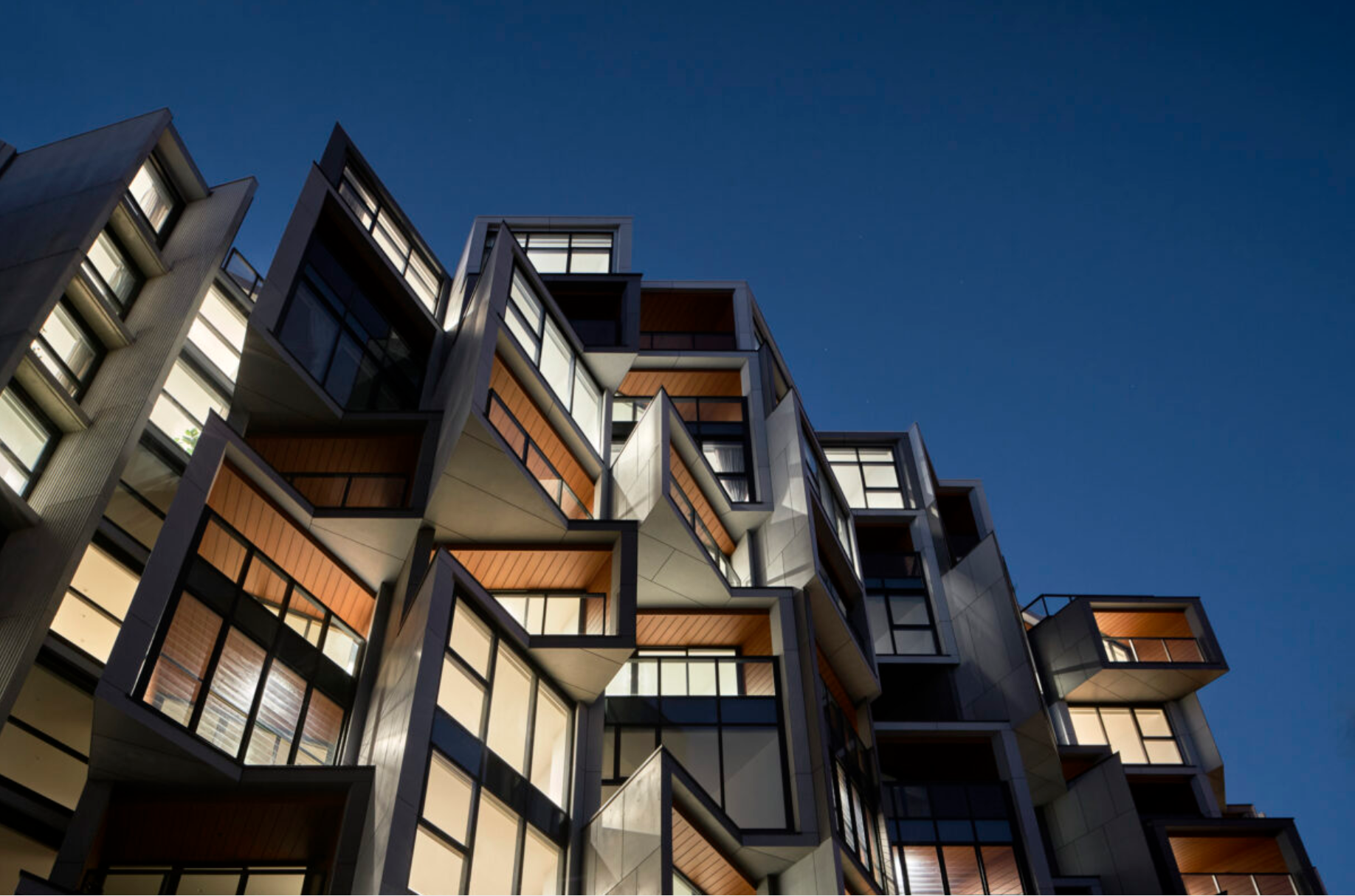 At first glance, the apartment building stands out for its modern façade. The ingenious use of clear, toned, and spandrel glass crafts an illusion of uninterrupted glass walls. This play of materials not only exudes modern elegance but also allows for a diverse range of visibility and privacy preferences for the residents. The result is a structure that isn't just functional—it's a visual masterpiece.